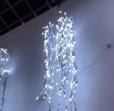 ARRANJO COM 200 LEDS, SENDO 140 LEDS FIXOS E 60 ESTROBINHOS, BIVOLT, 31 VOLTS, COM 20 CAÍDAS, SENDO 10 CAÍDAS COM 120 CM E 10 CAÍDAS COM 100 CM, FIO ARAME, PARA USO EXTERNO. POTÊNCIA MÍNIMA: 3,6 WATTS.IP- 44. CORES DISPONÍVEIS: BRANCO FRIO, BRANCO QUENTE.