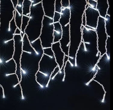 CASCATA 375 LEDS FIXA, FIO BRANCO C/ DIÂMETRO 1,8 MM, EXTERNO, 220V, C/75 CAIDAS: 50 CM, 40 CM, 30 CM, COMPRIMENTO: 10 METROS + 1 METRO DECABO DE FORÇA (TOTAL 11 METROS), TOMADA M/F, UNIÃO DE ATÉ 5 CASCATAS.POTÊNCIA MÍNIMA: 10 WATTS, IP- 44. CASCATA CONTENDO UMA RESINA DEPROTEÇÃO NA BASE DOS LEDS. FONTE RETIFICADORA IP-65 RETANGULARBLINDADA, MEDIDAS CLA 6,2 X 3,3 X 2,5 CM. COR DISPONÍVEL: BRANCO QUENTE.