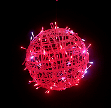 BOLA VAZADA C/ 30 CM, COM 100 LEDS, SENDO 10 ESTROBINHOS E 90FIXOS. USO EXTERNO. BIVOLT OU 220V. IP- 44. CORES DISPONÍVEIS: BRANCO FRIO, BRANCO QUENTE, AZUL, VERMELHO, VERDE, ROSA