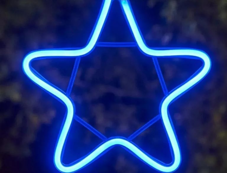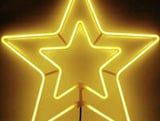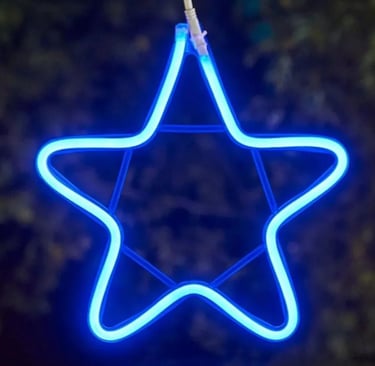 ESTRELA NEON C/ 30 CM, ARMAÇÃO EM PLÁSTICO RESISTENTE, ILUMINAÇÃO FIXA, 220V, EXTERNO. IP 44.CORES DISPONÍVEIS:BRANCO FRIO, BRANCO QUENTE, AZUL, VERMELHO, VERDE,ROSA, ROXO, OURO