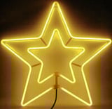 ESTRELA DUPLA DE NEON C/ 55 CM, ARMAÇÃO EM PLÁSTICO RESISTENTE AS DUAS ESTRELAS DA MESMA COR, SENDO A MAIOR COM 55 CM E A MENOR NO CENTRO C/ 30 CM. COM 8 FUNÇÕES. 220V. EXTERNO. IP-44. CORES DISPONÍVEIS: BRANCO FRIO, BRANCO QUENTE, AZUL, VERMELHO, VERDE, ROSA OURO.