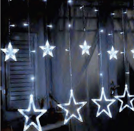 CASCATA 408 LEDS FIXOS COM ESTRELAS NA PONTA