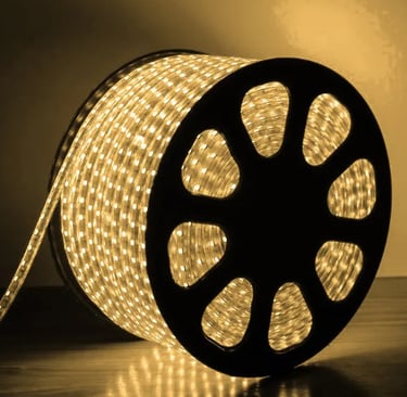 CORDA/MANGUEIRA LUMINOSA EM LEDS, 13MM DE DIÂMETRO, CORTE A CADA METRO, COM 40 LEDS POR METRO COM ESTROBINHOS. CADA METRO CONTÉM 8 ESTROBINHOS E 32 LEDS FIXOS. LEDS DEITADOS PARA UMA VISÃO EM 360 GRAUS. POTÊNCIA MÍNIMA: 3W/MT. USO INTERNO/EXTERNO. MANGUEIRA DE 2 FIOS. TENSÃO 220 VOLTS. ROLO COM 100 METROS CONTENDO: 5 CABOS DE FORÇA, 5 EMENDAS (CONECTORES INTERCONEXÃO) E 5 CAPAS DE TERMINAÇÃO 13MM. IP-44. CORES DISPONÍVEIS: BRANCO FRIO, BRANCO QUENTE, VERDE, VERDE CLARO,AZUL, AZUL CLARO, VERMELHO, ROSA, ROXO, OURO