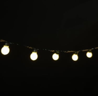 CORDÃO COM 66 BOLINHAS NA COR BRANCA QUENTE, LÂMPADARESISTENTE BOLINHA COM ROSCA, FIO VERDE 2.2MM, 220 VOLTS, TOMADAMACHO E FÊMEA, COM 10 METROS, USO EXTERNO, IP44, DISTÂNCIA DE UMALÂMPADA PARA OUTRA DE 15 CM. MEDIDA DA BOLINHA 2.8 CM. CORESDISPONIVEIS: BRANCO QUENTE.