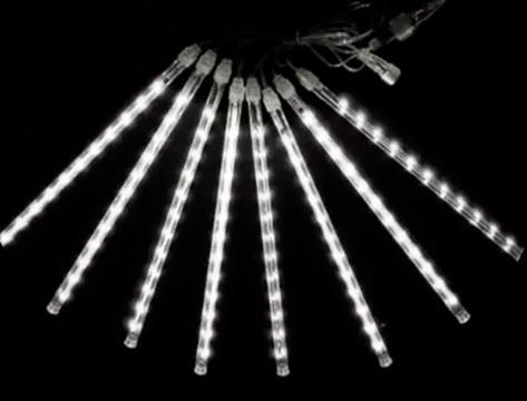 CONJUNTO COM 8 TUBOS SUPER LEDS, , FIO TRANSPARENTE/CRISTAL C/ DIÂMETRO DE 1,8 MM, BIVOLT, CADA TUBO C/ 80 CM, C/ 36 LEDS DE CADA LADO. 72 LEDS EM CADA TUBO. TOTAL: 576 LEDS. COMPRIMENTO: 4,5 METROS, TOMADA M/F, UNIÃO DE ATÉ 5 CONJUNTOS. POTÊNCIA MÍNIMA: 10 WATTS. IP- 44. COR DISPONÍVEL: BRANCO FRIO