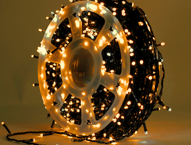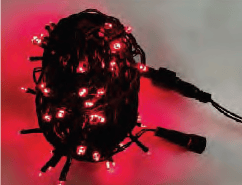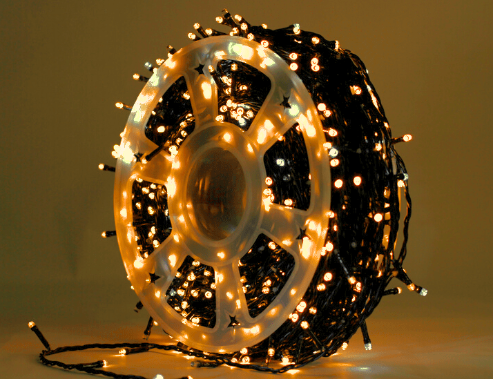 CORDÃO COM 100 LEDS FIXOS, TOMADA M/F PARA UNIÃO DE ATÉ 5CONJUNTOS PARA USO EXTERNO, RESISTENTES A CHUVA,SENDOTOTALMENTE A PROVA D’ÁGUA, COM FIAÇÃO RESISTENTE E SEUREVESTIMENTO NA COR VERDE. FIAÇÃO DE COBRE, DIÂMETRO DO FIO 1,8MM. COMPRIMENTO TOTAL DE 9,5 MTS MAIS 0,50M DE TOMADA. TENSÃO220 VOLTS. POTÊNCIA MÍNIMA: 5 WATTS, IP- 44. CORDÃO CONTENDO UMARESINA DE PROTEÇÃO NA BASE DOS LEDS. CORES DISPONÍVEIS: BRANCOFRIO, BRANCO QUENTE, VERMELHO, VERDE, AZUL, COLORIDO