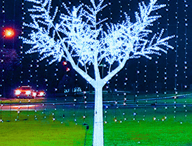 ÁRVORE CEREJEIRA COM 3.128 LEDS, ALTURA: 4,0 METROS. BIVOLT PARA USO EXTERNO. IP-44. CORES DISPONÍVEIS: BRANCO FRIO, BRANCO QUENTE, VERMELHO, AZUL, ROSA