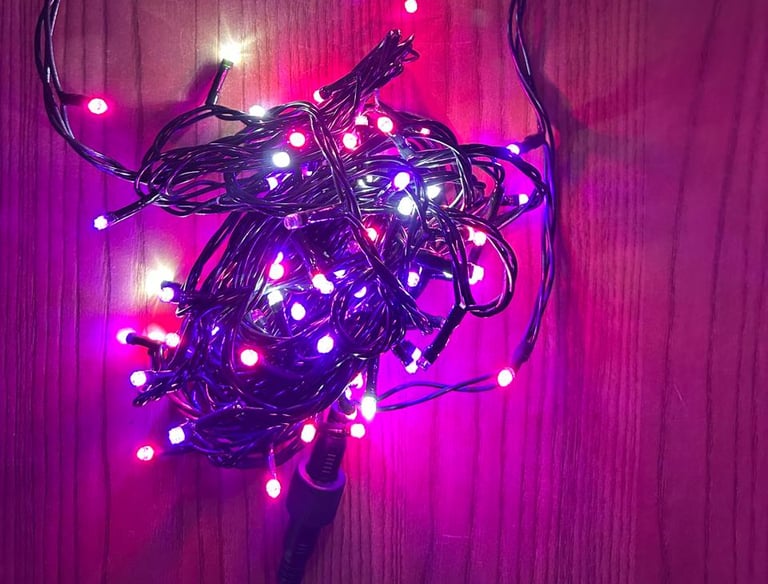 CORDÃO 100 LEDS 2 CORES ESTROBOS NA COR DOS LEDS