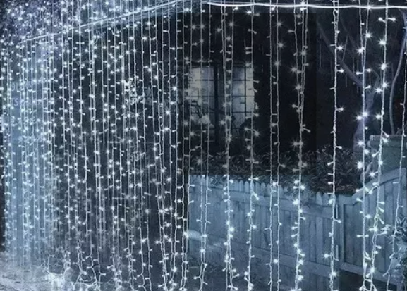 CORTINA C/ 600 LEDS, FIO BRANCO C/ DIÂMETRO 1,8 MM, COM SETE FIOS DE COBRE, EXTERNO, 220V, COM ESTROBINHOS NA COR BRANCA (480 FIXOS E 120 ESTROBINHOS), 24 CAÍDAS COM 25 LEDS, DISTÂNCIA ENTRE AS CAÍDAS 16 CM, DISTÂNCIA ENTRE OS LEDS 10 CM, MEDIDAS 4 X 2,5 METROS.TOMADA M/F, UNIÃO DE ATÉ 3 CORTINAS. POTÊNCIA MÍNIMA: 20 WATTS. IP- 44. CORTINA CONTENDO UMA RESINA DE PROTEÇÃO NA BASE DOS LEDS. FONTE RETIFICADORA IP-65 RETANGULAR BLINDADA, MEDIDAS CLA 6,2 X 3,3 X 2,5 CM. CORES DISPONÍVEIS: BRANCO FRIO, BRANCOQUENTE.
