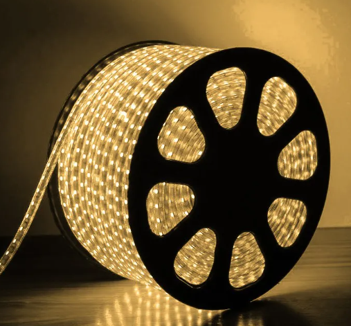 CORDA/MANGUEIRA LUMINOSA EM LEDS, 13 MM DE DIÂMETRO, CORTE A CADA METRO, COM 40 LEDS POR METRO. LEDS DEITADOS PARA UMA VISÃO EM 360 GRAUS. POTÊNCIA MÍNIMA: 3 W/MT. USO INTERNO/EXTERNO, MANGUEIRA DE 2 FIOS. TENSÃO: 220 VOLTS. ROLO COM 100 METROS, CONTENDO: 5 CABOS DE FORÇA, 5 EMENDAS (CONECTORES DE INTERCONEXÃO) E 5 CAPAS TERMINAÇÃO 13 MM. IP-44. CORES DISPONÍVEIS: BRANCO FRIO, BRANCO QUENTE, AZUL, AZUL CLARO, VERDE, VERMELHO, LARANJA, ROSA, ROXO, OURO.
